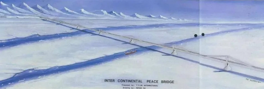 Следующей вехой стал проект китайца Тунг-Йен Лина, известного строителя и исследователя. Жил и работал он в Соединенных Штатах и прославился работами в области предварительно напряженного бетона. В 1958 году он предложил «Межконтинентальный мост мира», а в 1986 году вручил Рейгану подробный план его конструкции. Китаец был упорный – для продвижения проекта он зарегистрировал контору Inter-Continental Peace Bridge и даже просчитал стоимость строительства. Получилось очень оптимистично – не более 1 млрд. долларов. Впрочем, в 1994 году он в четыре раза увеличил затраты. Но так ничего по проекту не срослось.