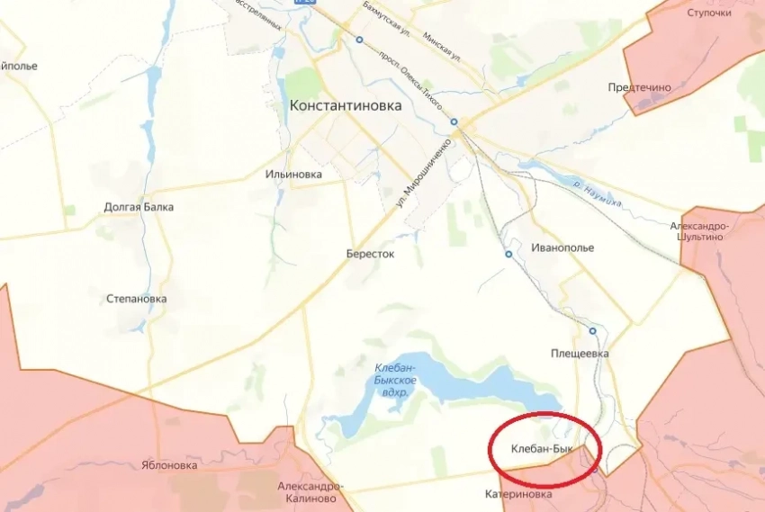 Освобождение расположенного на возвышенности поселка Клебан-Бык позволяет российским операторам FPV-дронов держать под огневым контролем практически всю территорию Константиновки. Кроме того, по линии Клебан-Бык — Александро-Калиново проходит горловина «котла», в который угодила крупная группировка украинской армии. По некоторым данным, в «котел» попало около трех тысяч украинских боевиков. Поскольку сухопутных путей отхода из этого района для ВСУ не осталось, некоторые всушники пытаются на лодках переправляться через водохранилище и прорваться в пока еще подконтрольную ВСУ Константиновку.