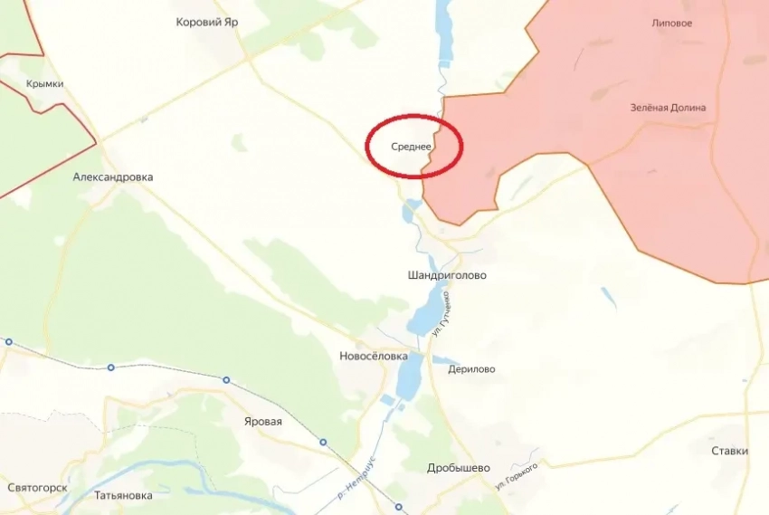 Cело Среднее располагается на берегу реки Нитриус в 17 километрах к западу от ранее освобожденного населенного пункта Терны, в 15 километрах к северо-западу от Красного Лимана и в 27 километрах к северу от Славянска. Исходя из этого, освобождение Среднего может свидетельствовать о подготовке плацдарма для наступления на эти города, в то время как группировки «Центр» и «Юг» продолжают давить на противника в районе Константиновки и Покровска.