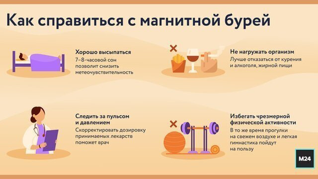 Как известно, магнитная буря происходит из-за воздействия потока солнечного ветра на магнитосферу Земли, которая служит повышенной радиационной защитой планеты. Нагрузки подобного рода скажутся на метеозависимых людях.