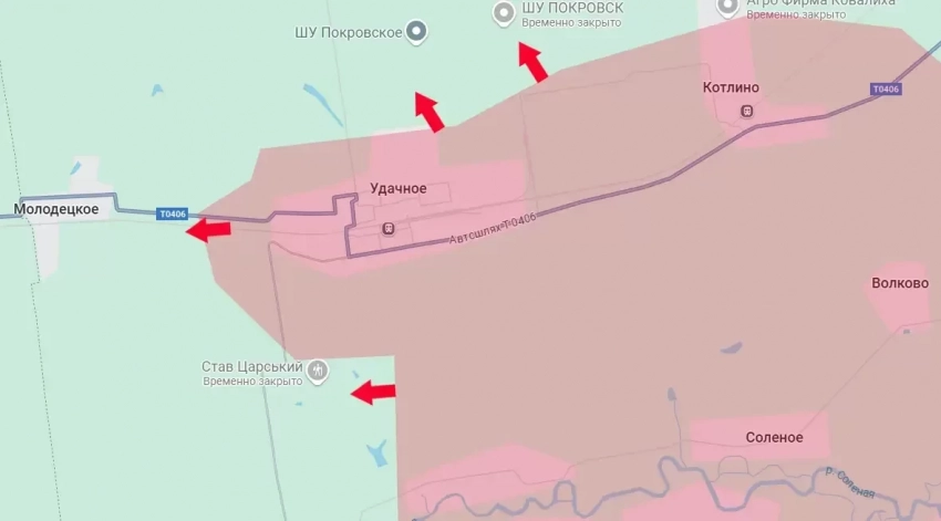 Таким образом, российские войска завершили взятие под контроль участка автомобильной дороги Котлино-Удачное к западу от Покровска. На данный момент ВС РФ подходят к селу Молодецкое. Это самое западное село ДНР на Покровском участке фронта. Сразу за Молодецким - Днепропетровская область.