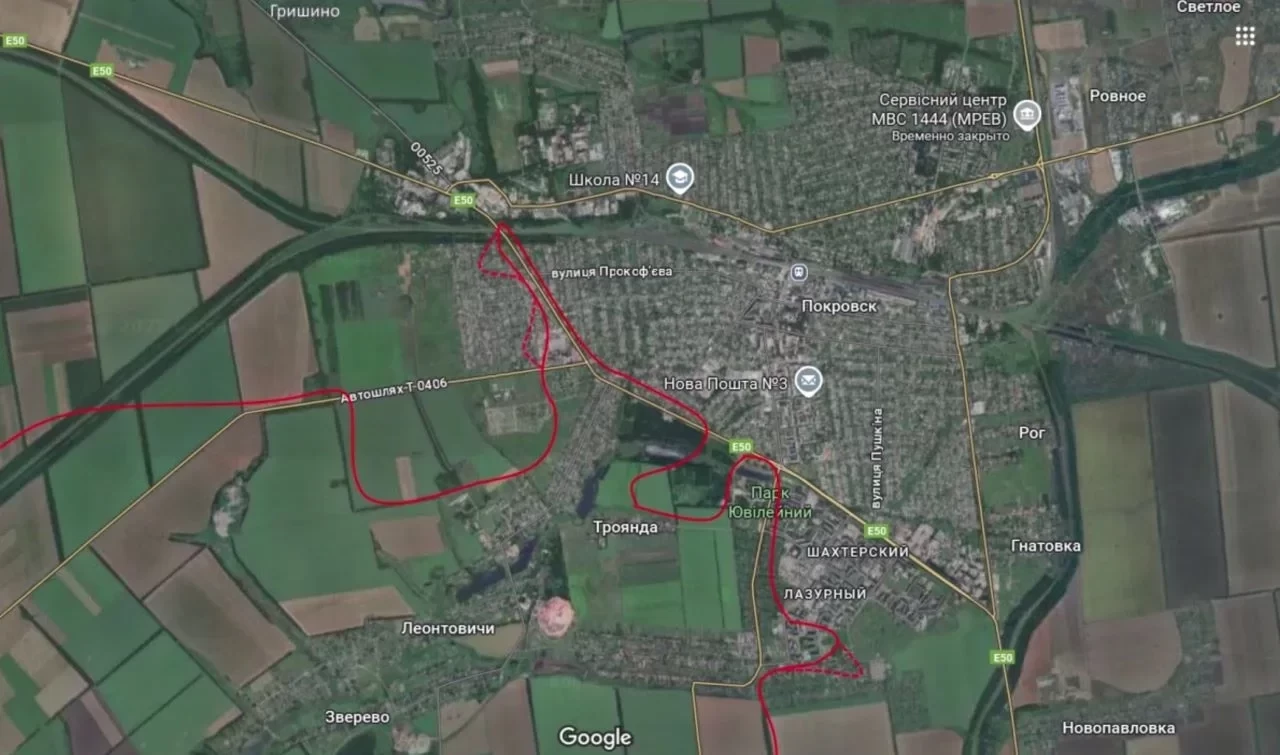 В Покровске ВС РФ развивают наступление, ориентируясь на трассу Е50 (на некоторых картах - М30). Цель - полная зачистка города от украинских формирований и выход на западные окраины, что откроет путь к Гришино.