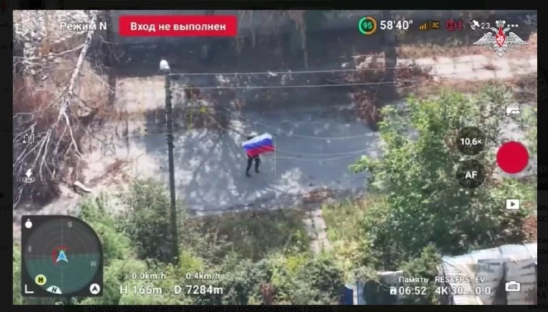 По словам Подоляки, на видео солдат с флагом стоит на узкой улочке, скрытой от площади, вместо того чтобы выйти на центр города, как обычно делают при демонстрации контроля. Эксперт отмечает, что в подобных роликах обычно участвует группа бойцов, которые уверенно позируют, улыбаются и машут - чего здесь нет.