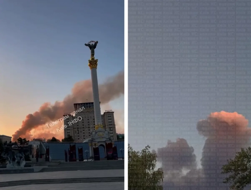 Поступает информация о прилёте в центральной части Киеве. Столб дыма виден с майдана «незалежности». Пока о точном месте прилёта не сообщается.