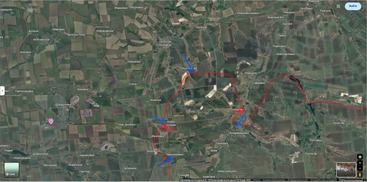 После этого удары сместились восточнее: боевые группы ВСУ предприняли попытку захода во Владимировку и Панковку. Одновременно фиксировались активные действия противника в районе Кучерова Яра — здесь украинские силы смогли оттеснить российские подразделения и перейти к продвижению в сторону Никаноровки и Нового Шахово.