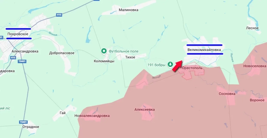 Поступают сообщения о том, что противник разбит возле населённого пункта Орестополь. Одновременно с этим идёт продвижение к соседнему селу Великомихайловка. Контроль со стороны ВСУ над Орестополем утрачен.