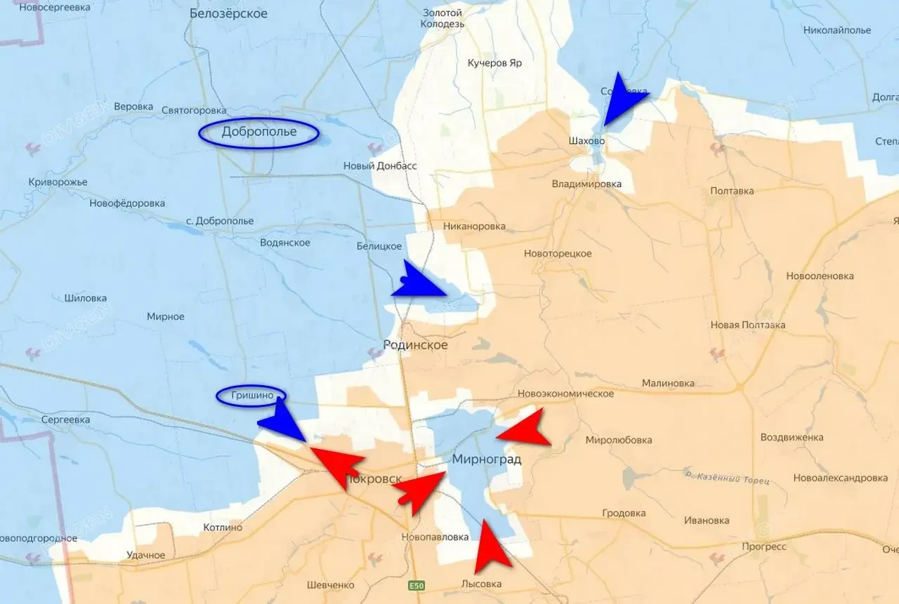 В самом Покровске российские подразделения 2-й армии группировки «Центр» продолжают зачищать от противника Центральный микрорайон, запад микрорайона Горняк и западную промзону. Также ведется зачистка села Ровное между Покровском и Мирноградом.