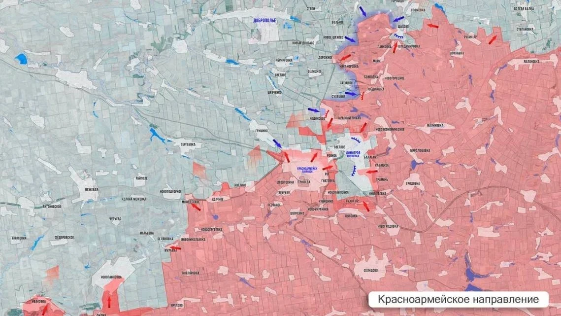 На Покровском направлении ВС РФ продвинулись в направлении Софиевки, ведут штурмовые действия во Владимировке и в Шахово. Российские войска имеют тактические успехи в южной части Мирнограда. Отмечаются интенсивные боестолкновения в северо-западной части Покровска и в направлении Гришино, ВСУ проводили локальные контратаки, успехов не достигли.