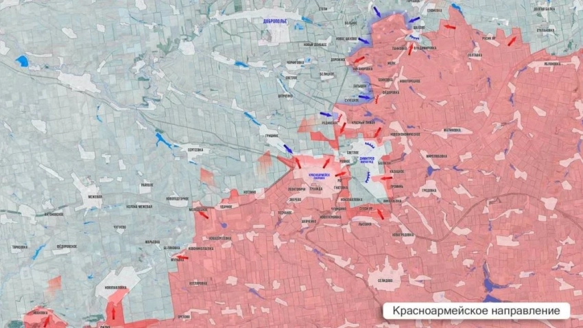 Ранее военные Telegram-каналы сообщили, что ВС РФ продвигаются в направлении центрального района Мирнограда, наши бойцы установили контроль в южной части города.