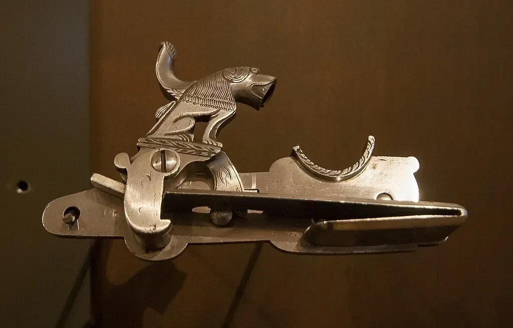 Испанский замок патилла, инкрустированный золотом и серебром, конец XVII в. Музей искусств, Кливленд
