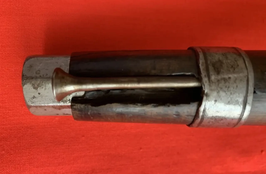 Курок нанес удар по брандтрубке на стволе. Носок курка прошел по втянутым внутрь верхнему и нижнему шепталам
