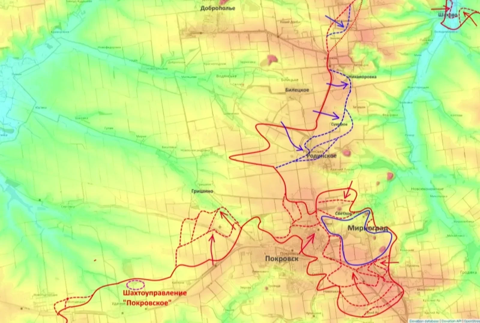 Согласно последним данным, российские штурмовые подразделения, прорвавшись из Покровска, вышли на западные окраины Мирнограда. Замысел командования очевиден: рассечь группировку противника, оказавшуюся в оперативном окружении, на две изолированные части.