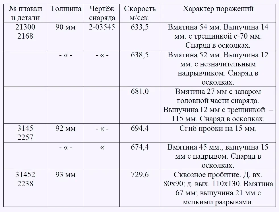 1) Скорость при пределе тыльной прочности (ПТП) соответствует требованиям технических условий 630–640 м/сек снарядом черт. 2-03545.
