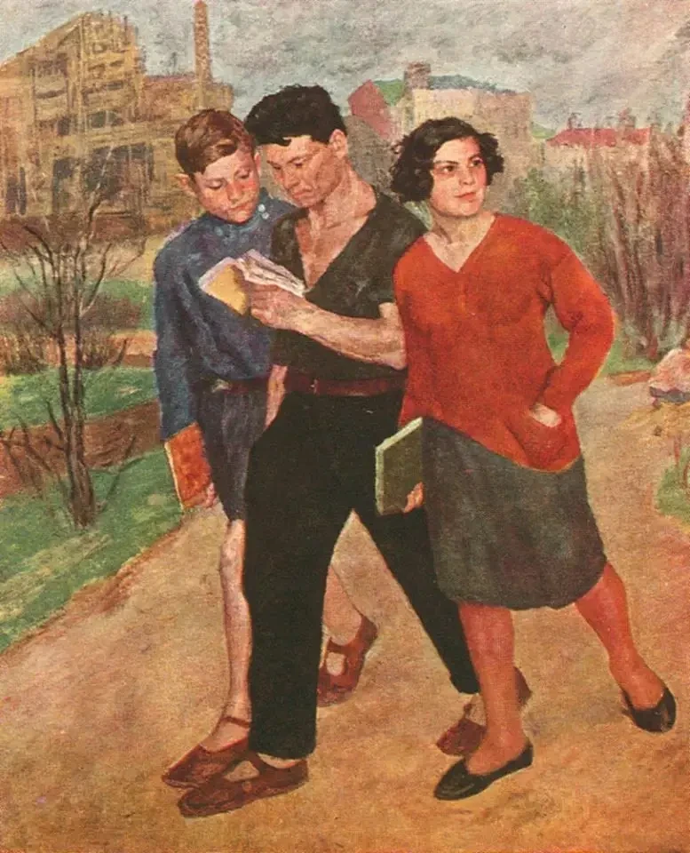Б. Иогансон «Рабфак идет»: наглядная иллюстрация работы социальных лифтов в обществе нового типа, благодаря которому реализация свечинских идей стала возможной на практике