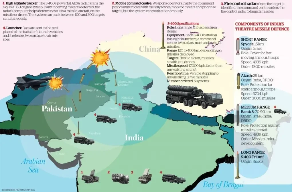 Дальнобойные зенитные ракетные системы С-400, обладающие некоторыми противоракетными возможностями, являются мощным сдерживающим фактором для ВВС Пакистана. Недавно стало известно, что Нью-Дели планируют приобрести ещё два дивизионных комплекта С-400 и дополнительные партии зенитных ракет, что станет предметом переговоров на высшем уровне в ближайшее время.