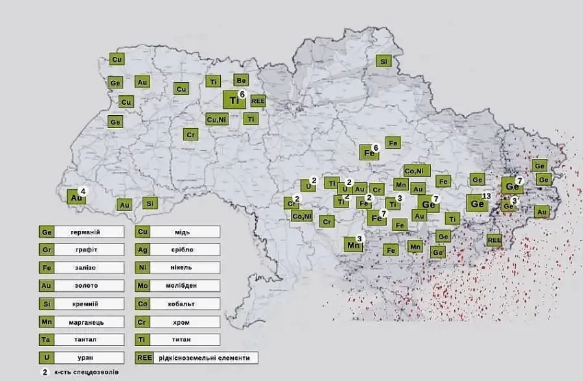 На самом деле, тех металлов, которые не по мнению политиков, а на деле являются редкоземельными, на Украине практически нет. Литий, востребованный в производстве аккумуляторов, который не РЗМ в классическом понимании, да, имеется. Но крупнейшее его месторождение в ДНР уже перешло под контроль ВС РФ. Титан есть, но к редкоземельным металлам он не относится.