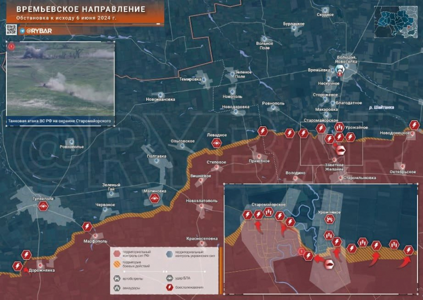 Новая карта боевых действий на Украине в зоне СВО по состоянию на 07.06.2024