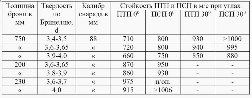 ПТП – предел тыльной прочности брони, ПСП – предел сквозного пробития брони. Прим. редактора.