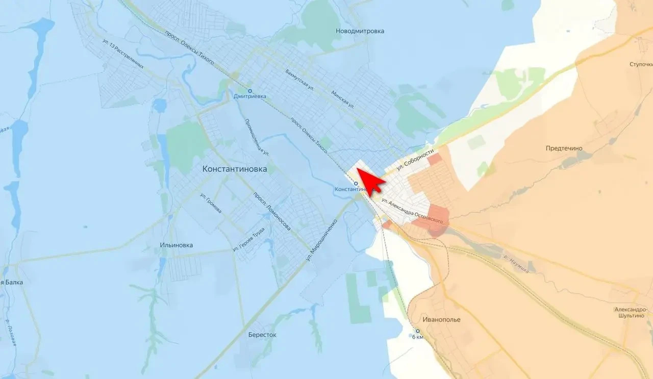 Российская армия постепенно забирает под свой контроль южную часть Константиновки. Зайдя со стороны Иванополья, штурмовики заняли вагонное депо. Также под российский контроль перешло трамвайное депо на въезде в город. Есть определённое продвижение в частном секторе.