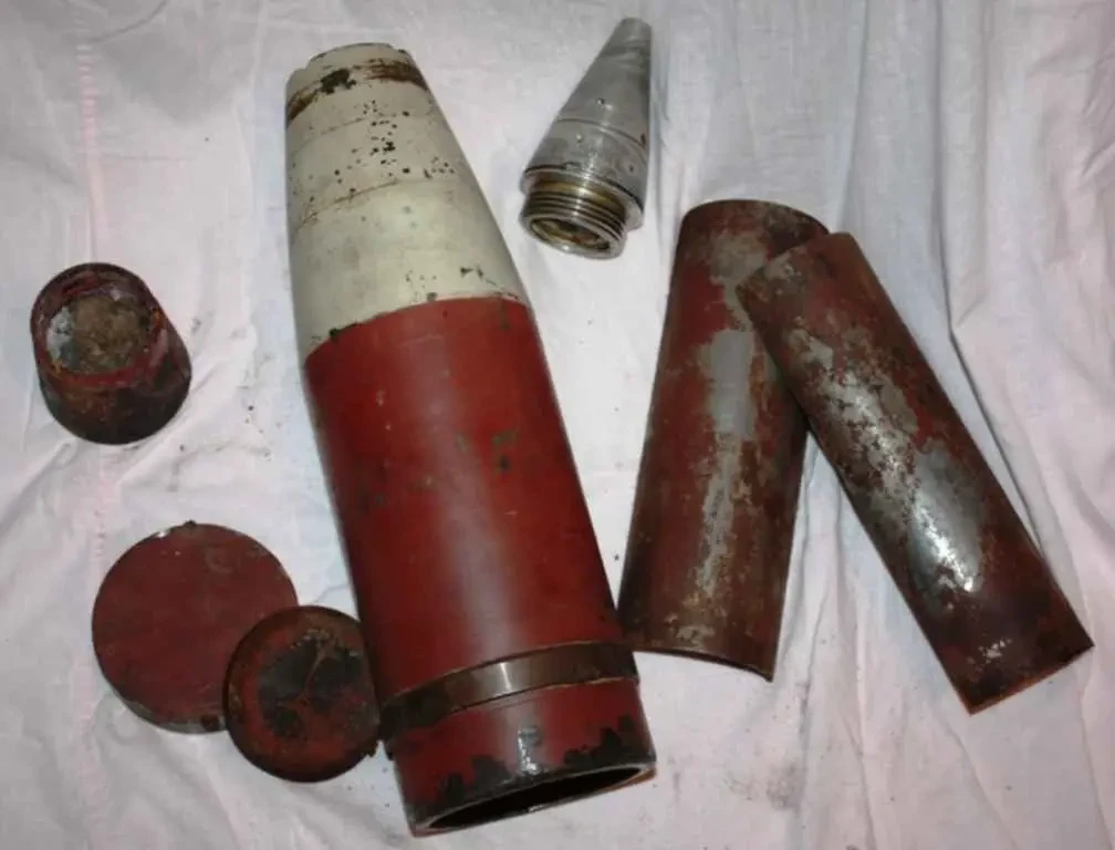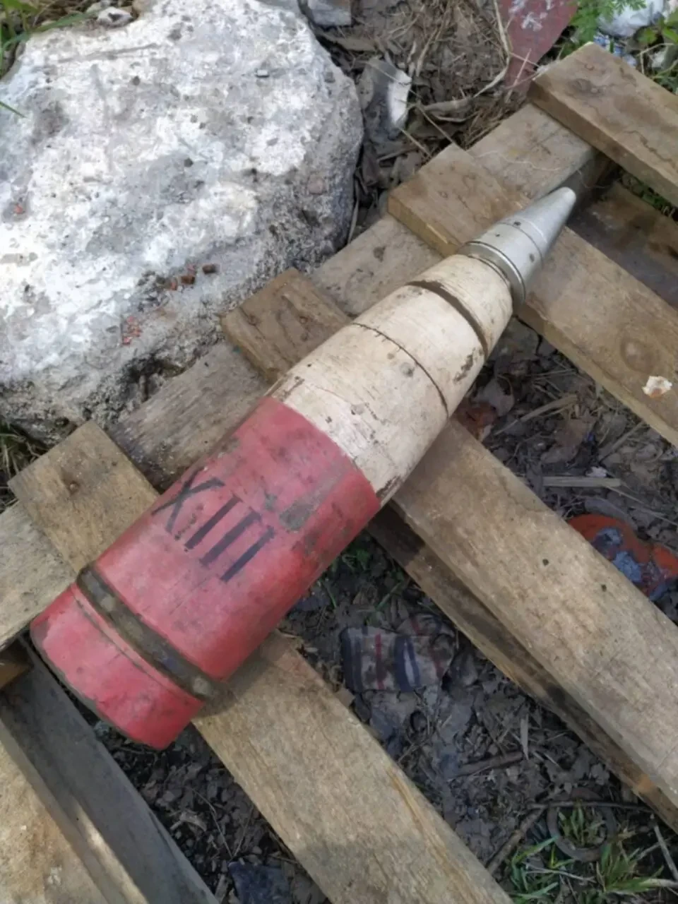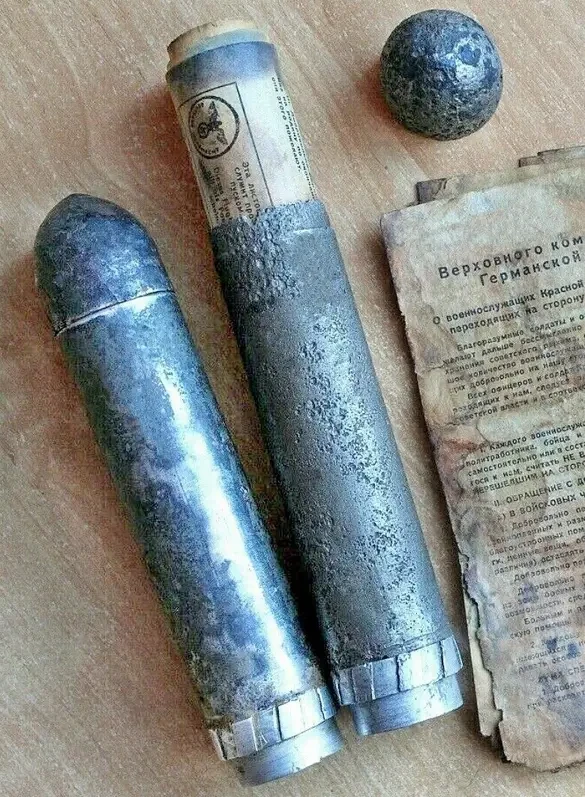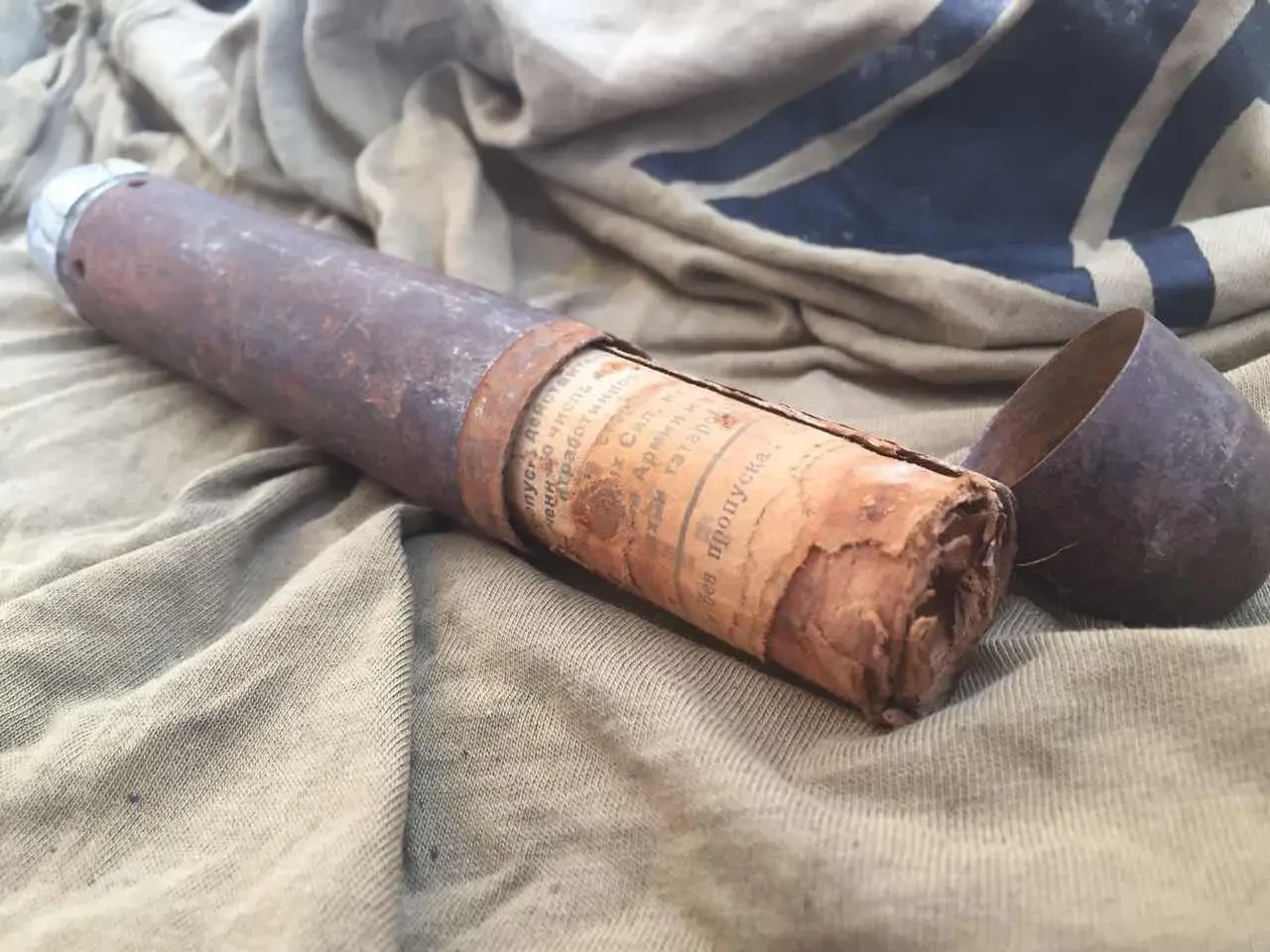 30-мм агитационные гранаты, найденные поисковым отрядом (рядом с их содержимым)