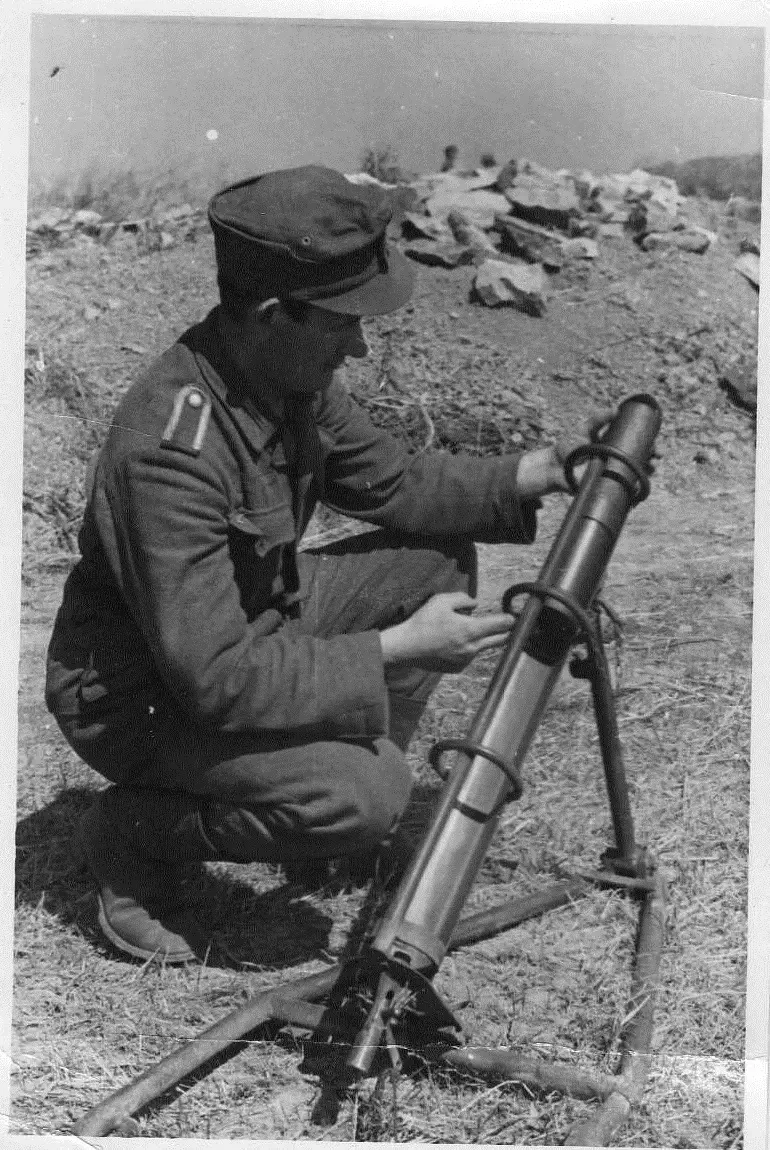 Немецкий солдат заряжает 73-мм реактивную агитационную гранату