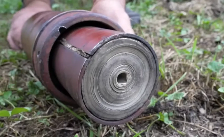Рулон пропагандистских листовок в 105-мм агитационном снаряде