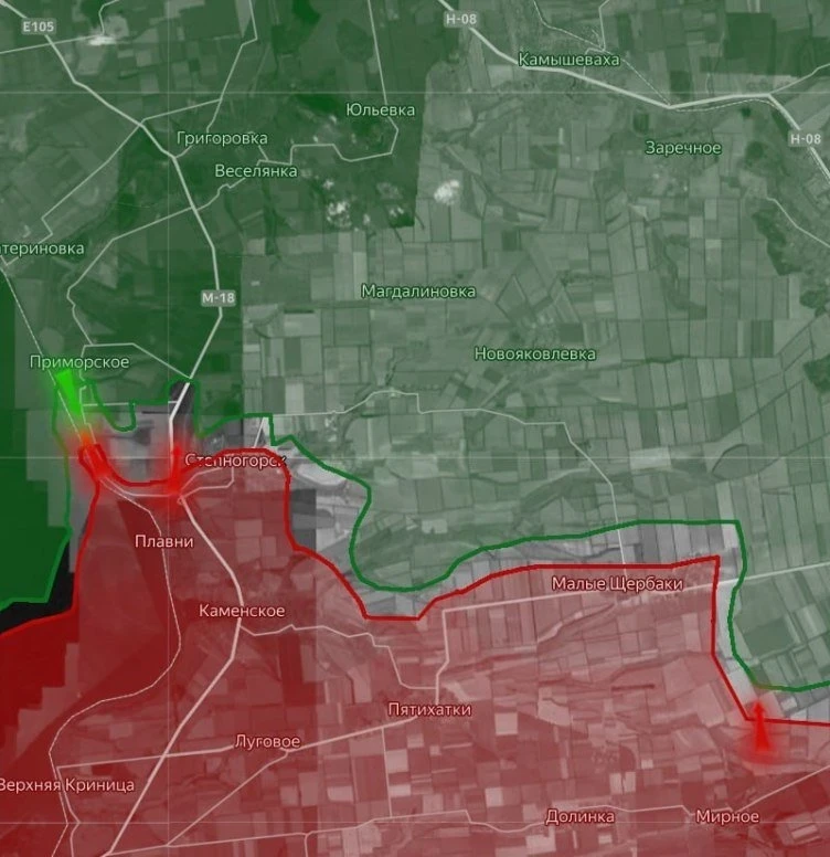 На Запорожском направлении продолжаются бои в Приморском и в районе многоэтажек Степногорска, наши давят в Малокатериновке. Почти весь Степногорск перешел под наш контроль.