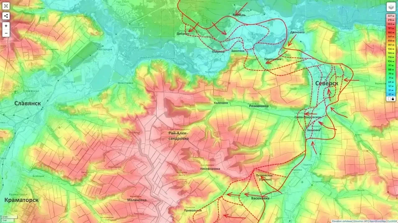 По сведениям канала, после взятия Северска освободившиеся значительные силы могут быть направлены на дальнейшее продвижение к обозначенным выше целям.