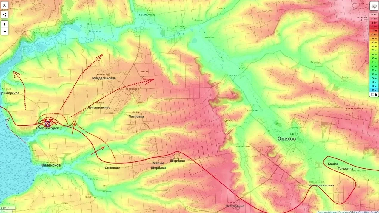 Освобождение Степногорска открывает российским войскам возможность для маневра и движения в обход Орехова с северо-запада.