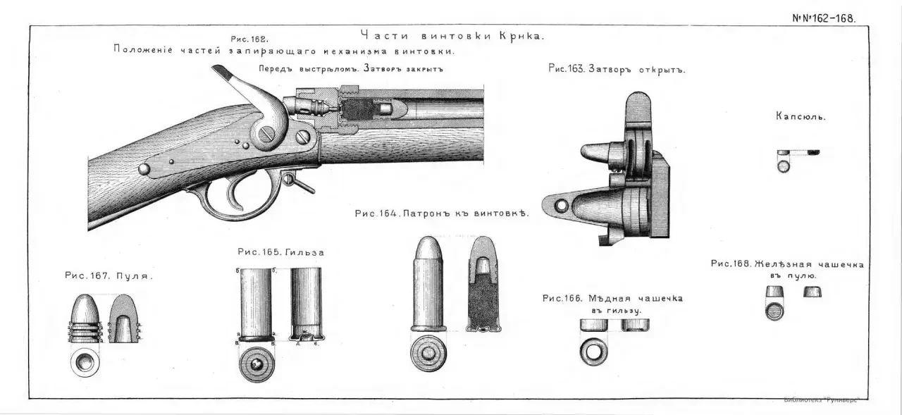 Благодаря этому выбору «крынки» (у нас в России не могли привыкнуть, что фамилия Крнка произносится без «ы») навсегда закрепился за переделанными под металлические патроны этими новыми для России винтовками, равно как «Снайдер» для Великобритании и «Люк» за винтовкой 1873 года в США.