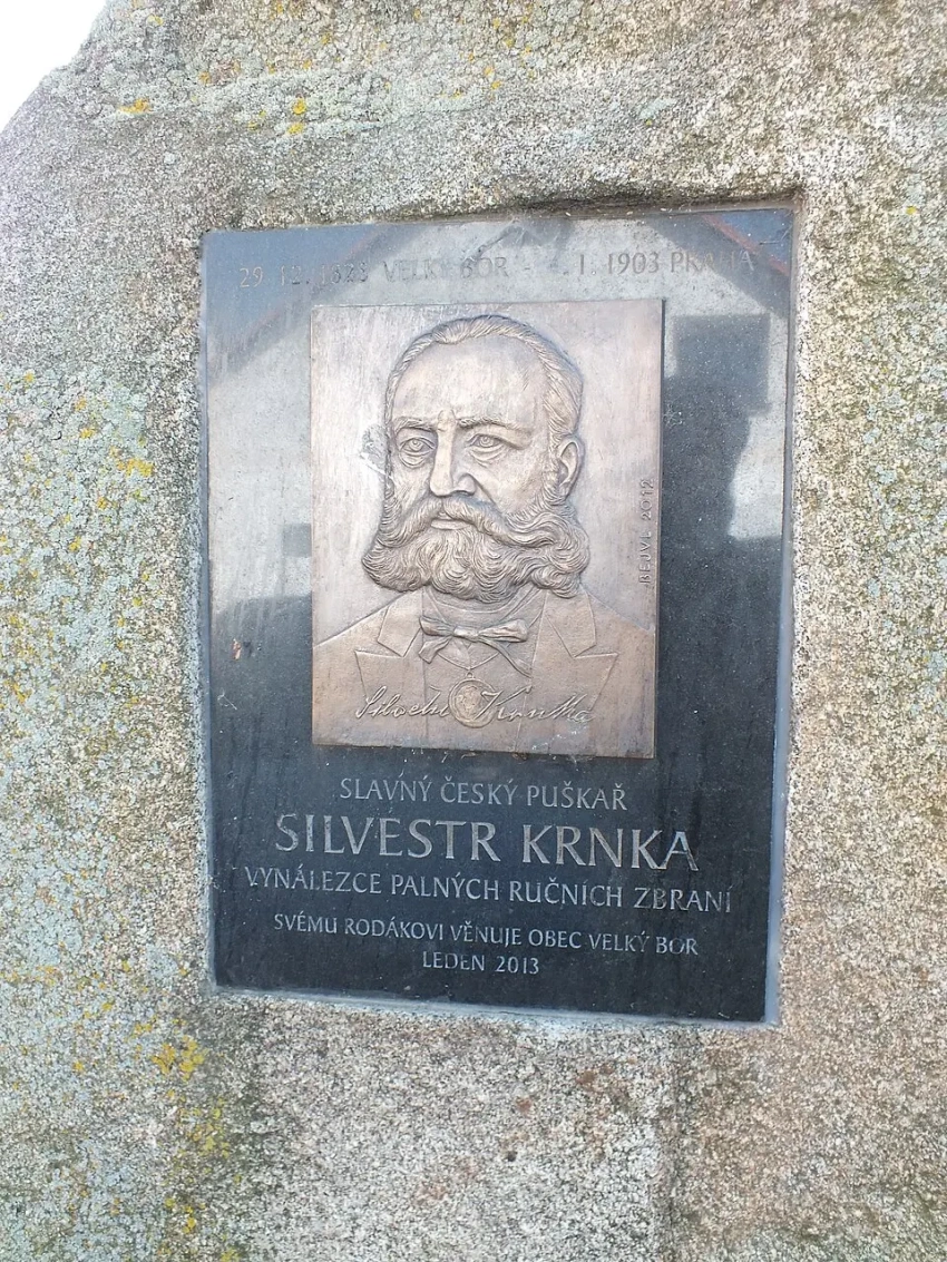 Что касается создателя этой винтовки, то Сильвестр Крнка, чех по национальности, родился 31 декабря 1825 года в чешском местечке Великий Бор. В 1838 году Крнка переехал в Вену и стал учеником оружейника Матея Новотного, у которого приобрел необходимые знания и навыки. В 1848 году жители южночешского городка Волине пригласили его переехать в их город и занять должность оружейного мастера на местном оружейном складе их местной Национальной гвардии.