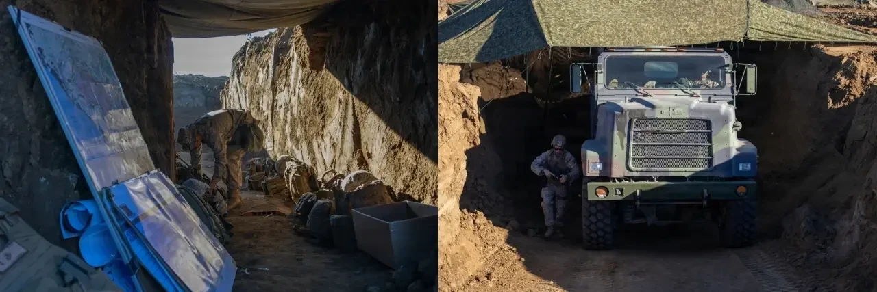 В рамках учений Steel Knight 25 в Кэмп-Пендлтоне (Калифорния) одно из подразделений снабжения КМП США создало сеть фортификационных сооружений, в которых пыталось прятать личный состав и военную технику. В командовании пояснили по этому поводу: