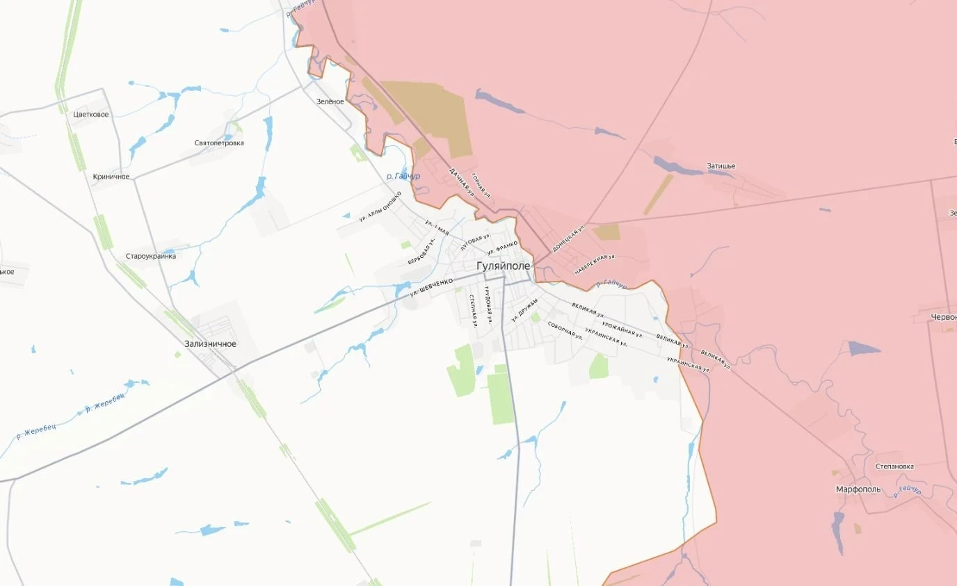 На Гуляйпольском участке фронта под контролем ВС РФ фактически север и восток Гуляйполя, после прорыва у больницы - значительная часть юга. Укрепляются плацдармы за Гайчуром. Бои на подступах к Заречному, оборона ВСУ в Герасимовке и Андреевке фактически сломлена.