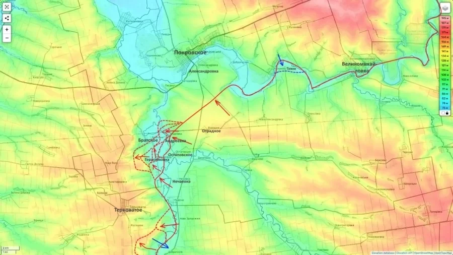 Российские подразделения расширили плацдарм на западном берегу реки Гайчур севернее Терноватого и продвинулись к юго-востоку от посёлка, формируя устойчивый оперативный «мешок».