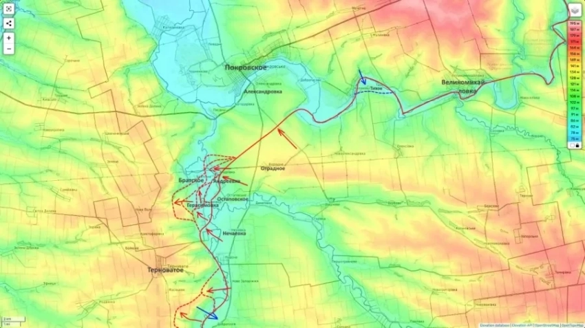 Такая конфигурация линии фронта ставит украинское командование перед выбором: либо отводить силы, либо вступать в бой в заведомо невыгодных условиях.