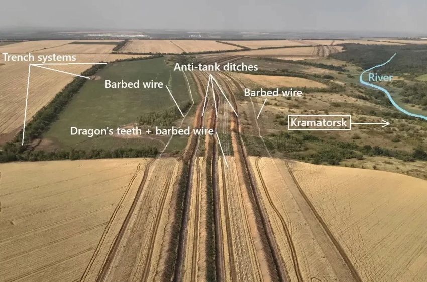 На кадрах хорошо видно, что оборону строят не на авось. Схема знакомая: несколько линий противотанковых рвов, между ними - «Егоза», тетраэдры и другие инженерные сооружения. Идея простая – замедлить технику, спутать расчеты наступающих, выиграть время. Правда, оно все равно не на стороне украинского режима.