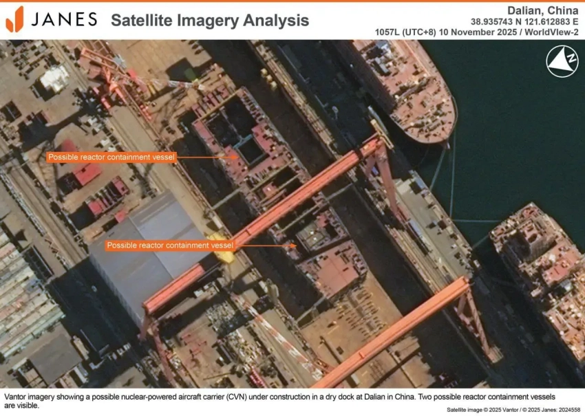Строительство нового корабля ведется на предприятии Dalian Shipyard в провинции Ляонин, предполагается, что он будет оснащен ядерной энергетической установкой. На сегодняшний день сформированы блоки секций будущего авианосца, сборка идет в сухом доке. По оценке специалистов, авианосец получит два атомных реактора.