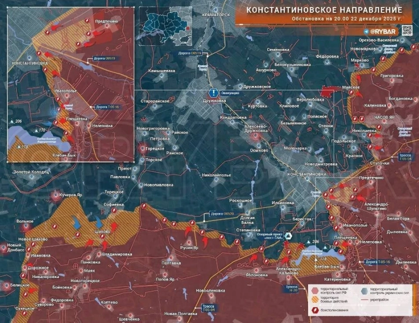 Карта боевых действий на Украине. Обстановка в зоне СВО по данным на 23 декабря