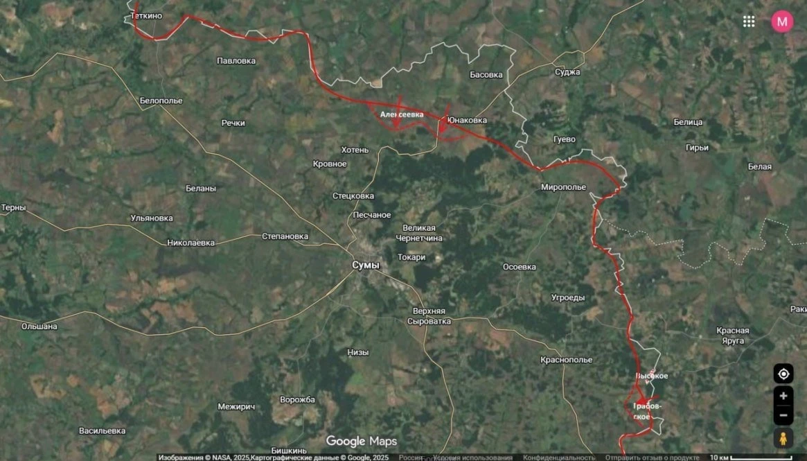 И он есть. И не только в районе н.п. Высокое и Грабовское (куда командование ВСУ также вынуждено было бросить часть своих и без того скудных здесь резервов). Наши части нанесли несколько ударов севернее Сум и сумели не только вернуть под свой контроль большую часть утраченных своих за лето позиций (район Алексеевки), когда ВСУ активно контратаковало, чтобы выбить нас за пределы Сумской области, но и занять новые (южнее Юнаковки).