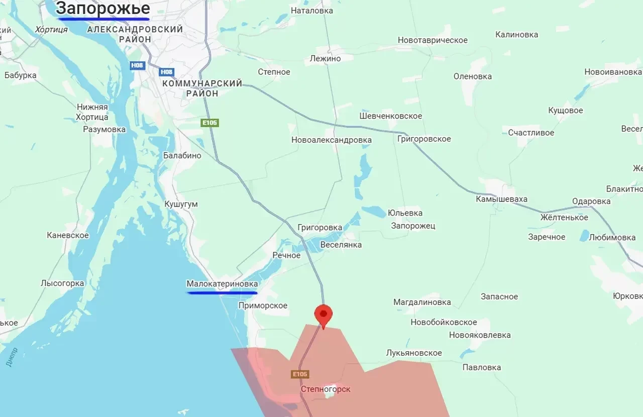 Поступают сообщения о том, что ВС РФ приблизились к Запорожью со стороны Степногорска ещё примерно на 1,5 км, сократив расстояние менее 17,5 км.