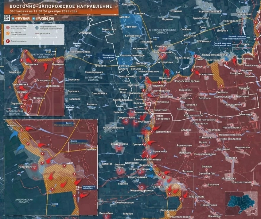Карта боевых действий на Украине. Обстановка в зоне СВО по данным на 25 декабря
