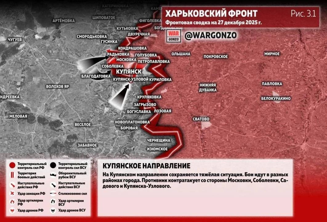 Главные новости » Эксклюзив » Прояснилась текущая обстановка в Купянске: свежий обзор боевых действий по данным на 27.12.2025