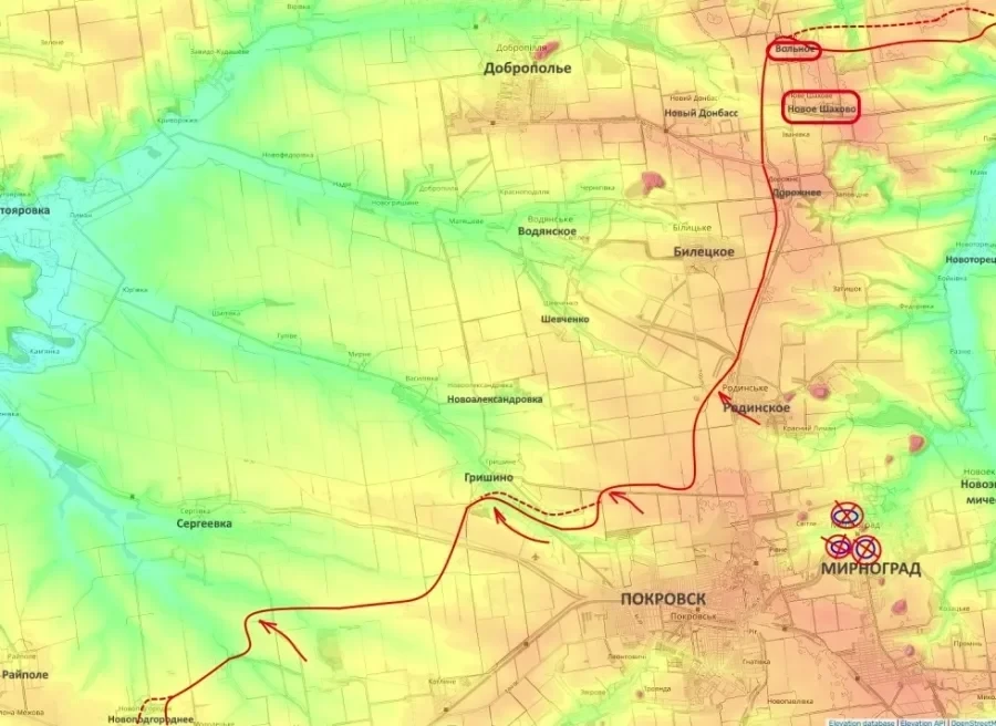 Освобождение Мирнограда открыло возможности для наступления на Доброполье. Уже подтверждено взятие населённых пунктов Вольное и Новая Шахова, фиксируется продвижение в сторону Нового Донбасса и Белицкого.