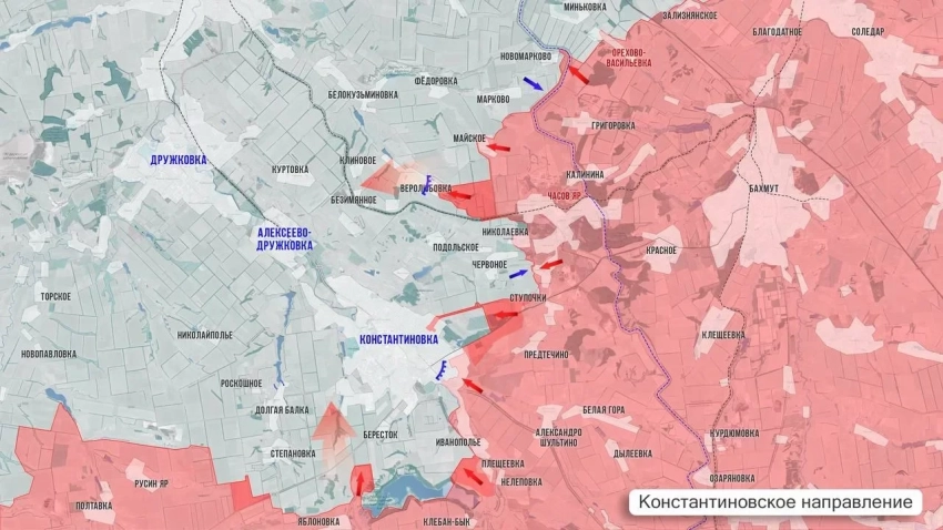 На Константиновском участке ВС РФ реализуют тактику охвата. Заняты новые рубежи у Степановки и Берестка, кольцо вокруг Константиновки сжимается с юго-запада.