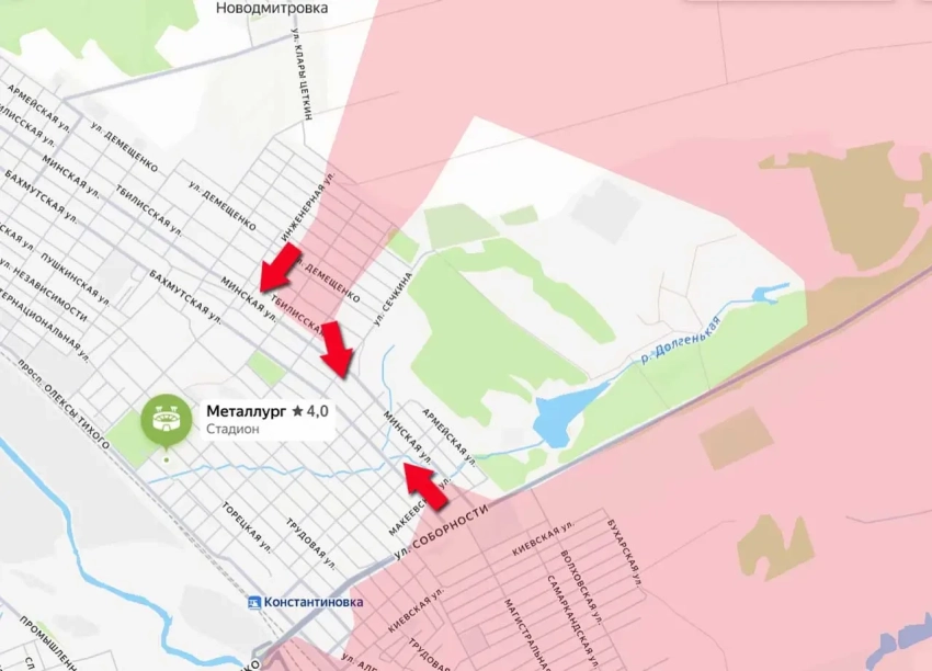 Одновременно с этим, несколько штурмовых групп при поддержке дроноводов прорвали оборону ВСУ в северо-восточной части Константиновки и вошли в город южнее села Новодмитровка. На этом участке ЛБС под контроль армии России перешли значительные части следующих улиц: Сталеплавильная, Мартеновская, Парковая, Белинского, Радищева, Волгоградская, Демещенко, Шанхайская, Армейская, Тбилисская, Инженерная.