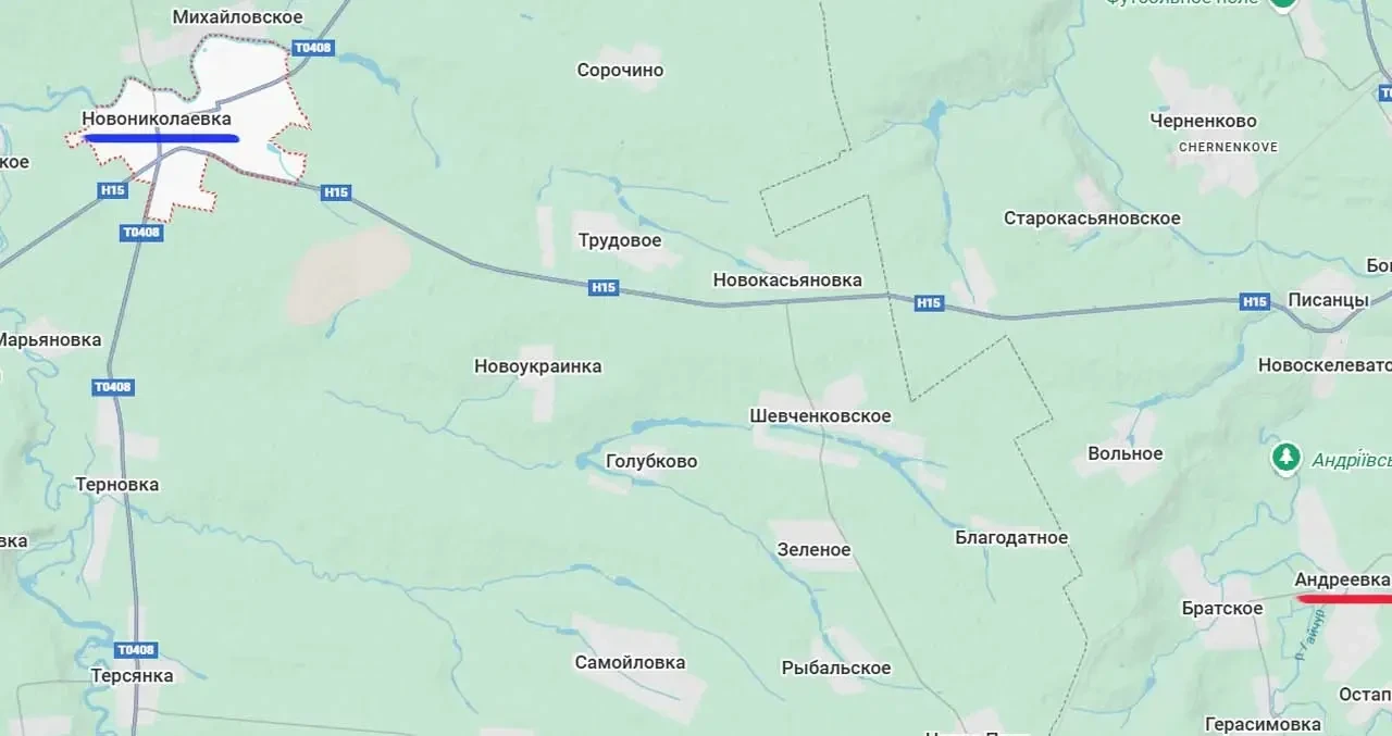 Продвижение к западу от Андреевки приближает армию Россию к стратегическому транспортному узлу северо-востока Запорожской области - пгт Новониколаевка. В нём сходятся автодороги Н15 Запорожье-Донецк и Т0408 Павлоград-Токмак. Потеря контроля ВСУ над этим транспортным узлом скомкает всю его логистику на севере Запорожской и на востоке Днепропетровской областей.