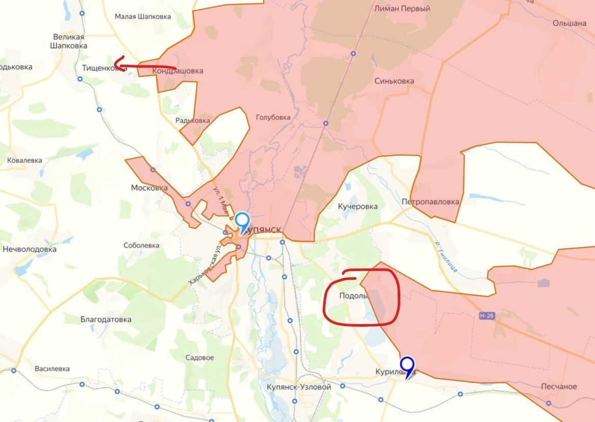 По данным Мучного, ВС РФ уже закрепились в Тищеновке и прощупывают почву для резкого скачка к н.п. Великая Шапковка. В целом по Купянскому направлению, по данным украинского солдата, ситуация не стабильна и для ВС РФ, и для ВСУ. ВС РФ действует осторожно, по мнению украинской стороны, «готовя что-то большое».