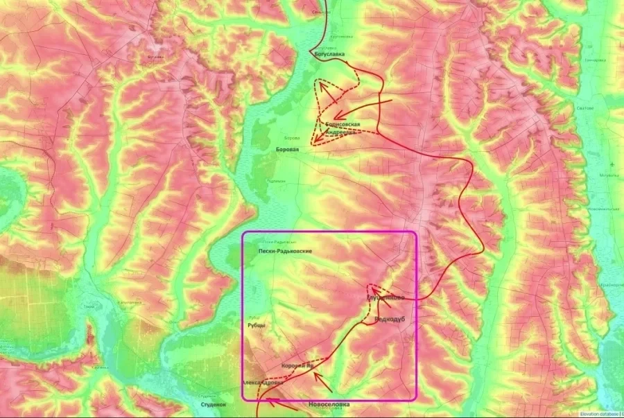 В зоне ответственности группировки войск «Днепр» Министерство обороны РФ официально подтвердило освобождение населённого пункта Новобойковское. Это продвижение позволило вбить клин между двумя линиями обороны противника с перспективой выхода к Юрковке.