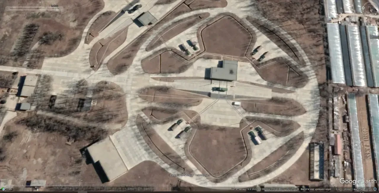 Спутниковый снимок Googlе Еarth: позиция ЗРС С-300ПМУ-2 Снимок сделан в сентябре 2021 года