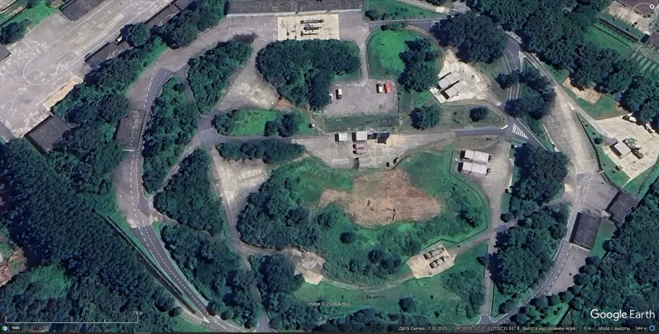 Спутниковый снимок Googlе Еarth: позиция ЗРС С-300ПМУ-2 на берегу Формозского пролива в 16 км восточней Чжэнчжоу. Снимок сделан в июле 2025 года